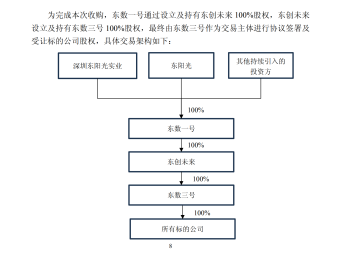 需要说明的是,东数一号还承诺将进一步引入其他投资方,为实施本次收购筹措资金,并使得东阳光在本次收购完成时持有东数一号股权比例不超过30%。同时,东数三号是东数一号的全资孙公司,因此,本次交易完成后,东阳光将成为东数一号的参股股东,间接持有秦淮数据中国股权。